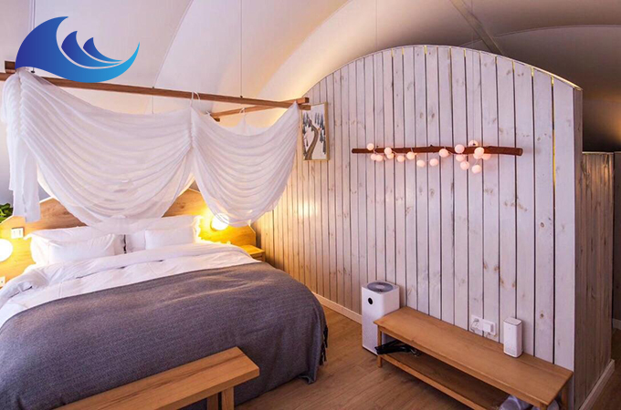 越宏在根據(jù)不同場(chǎng)地上的帳篷酒店設(shè)計(jì)中,前提是要到場(chǎng)地勘察,測(cè)量、根據(jù)環(huán)境而進(jìn)行做出初步設(shè)計(jì)的定論,并且。首要保證帳篷酒店的穩(wěn)固性,以及能抵抗環(huán)境的影響還有惡劣天氣的影響。不僅帳篷酒店外觀要有時(shí)尚藝術(shù)建筑美造型,還做好全方位防水措施。