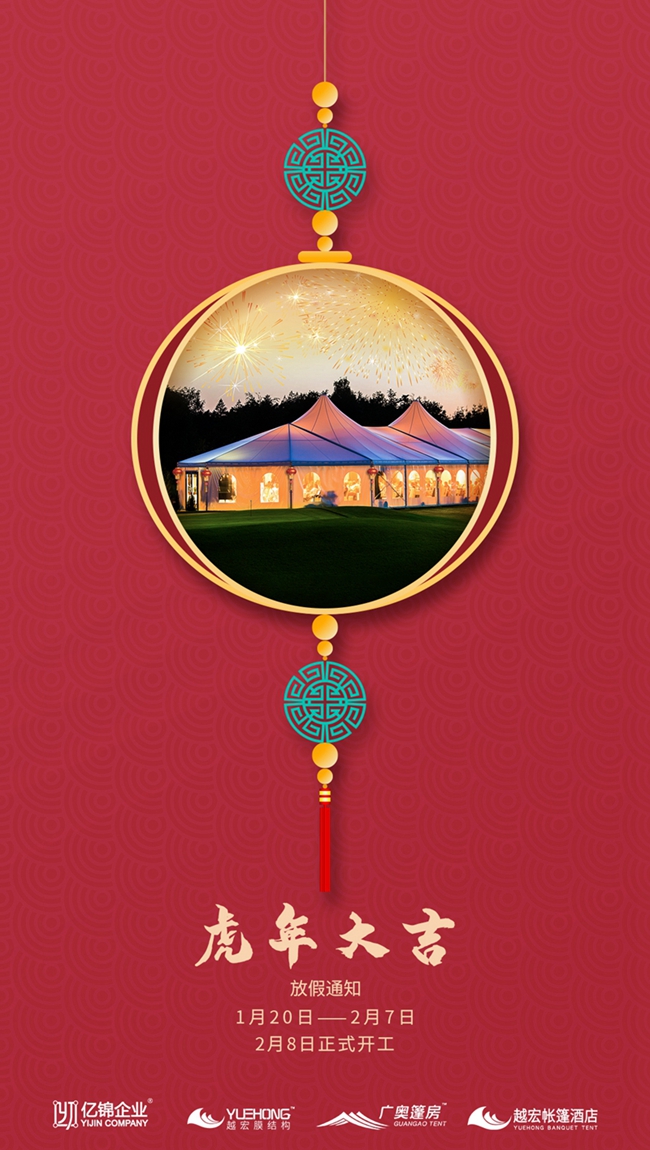 感謝所有的客戶與億錦家人們在這一年的陪伴與支持。在2022年新春來臨之際,億錦企業(yè)(旗下越宏膜結(jié)構)提前祝大家新春快樂,虎年大吉,虎虎生威!
