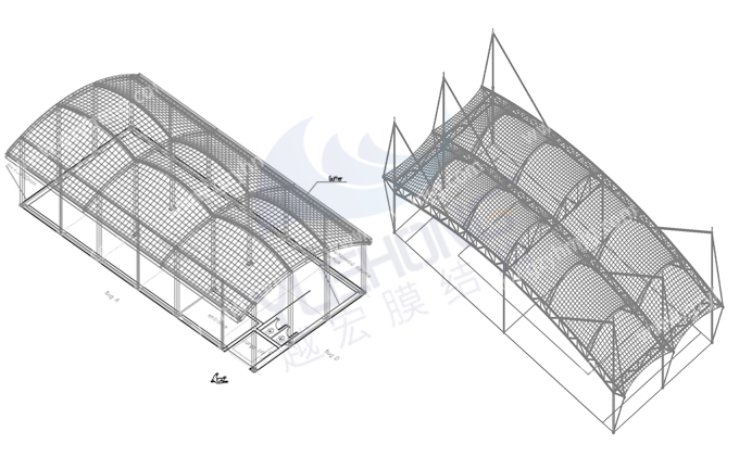 越宏膜結(jié)構(gòu)廠家的游泳池膜結(jié)構(gòu)遮陽棚是由鋼結(jié)構(gòu)和膜材組成,分別有張拉式膜結(jié)構(gòu)、索膜結(jié)構(gòu)、骨架式膜結(jié)構(gòu)、空間結(jié)構(gòu)式等供選擇,根據(jù)不同場景進(jìn)行設(shè)計(jì)出個(gè)性化膜結(jié)構(gòu)。
